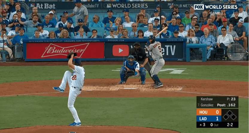In televised baseball, the alleyway formed in this image between pitcher catcher/umpire and batter is where the viewer spends most of her visual, metabolic time: the tension is constant and is increased by the mannerism of the corporal figures. But it is exactly in this context of extreme physiological stimulation for the viewer that advertisements are strategically placed with the specific objective of exploiting such metabolic process and its intensity thereby gaining more immediate and probably subliminal access to the consumer’s longer term memory.