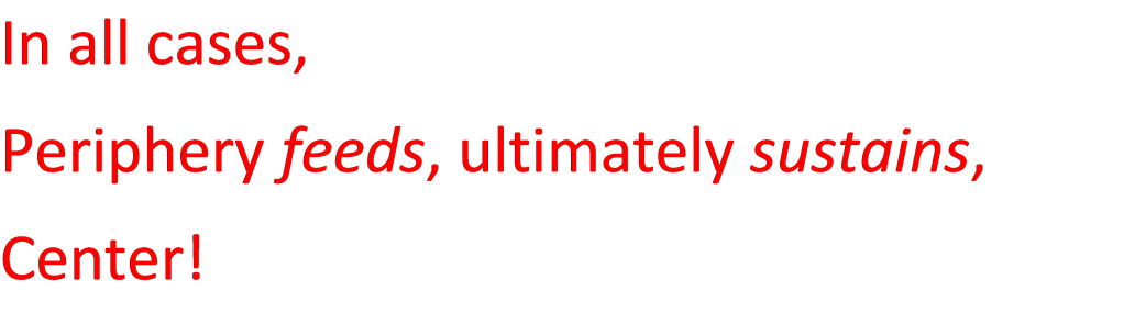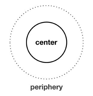The distinction Agamben makes between the classical Greek Zoe and Bios can similarly be considered in light of a center-periphery relationship that contains–or hides–an underlying, symbiotic connection of mutual dependence between the parts. Agamben’s thesis is, of course, the matter of a confusion between both, leading ultimately to the incapacity of bios (that is, our culturally rational mode of socialized being) to understand and value its own technical origin and structural antecedent (Zoe).