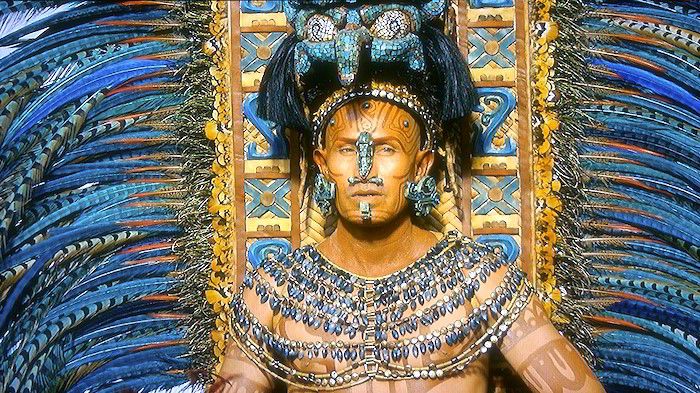Imagen del gran “emperador-dios” del mundo maya recreado en Apocolypto (2006) y a cuya figura se rinden los sacrificos
