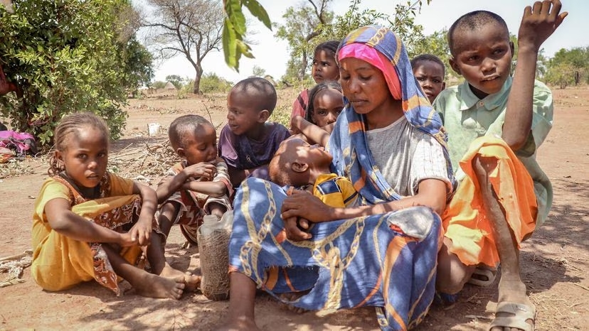 Imagen de madre del Sudán con niño pequeño en brazos rodeada de otros niños VERSUS Juan Avilés después del 68 y la deriva terrorista de occidente